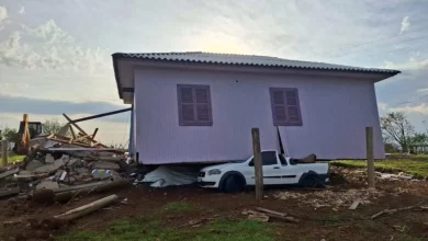 Vento forte destrói casas e derruba rede elétrica em cidade de Santa Catarina
