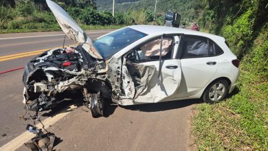 Colisão entre carro e caminhão deixa vereadora ferida na ERS-129, entre Encantado e Muçum