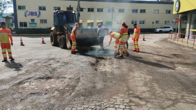 Operação tapa-buracos é realizada na Rua 31 de Março, em Roca Sales