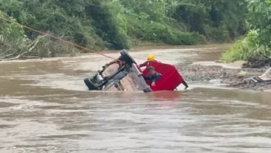 Bombeiros intensificam buscas por homem desaparecido após carro ser arrastado por correnteza em Candelária