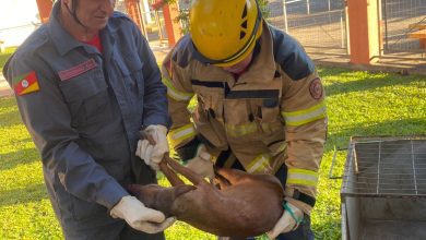 Veado é resgatado no pátio de escola em Encantado
