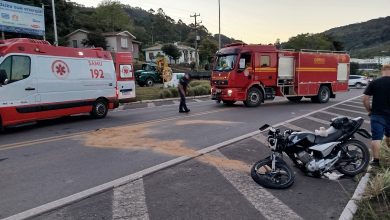 Motociclista fica ferido em acidente com dois caminhões no trevo de acesso a Encantado