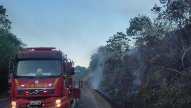 Bombeiros combatem incêndio em vegetação às margens da ERS-130 em Encantado