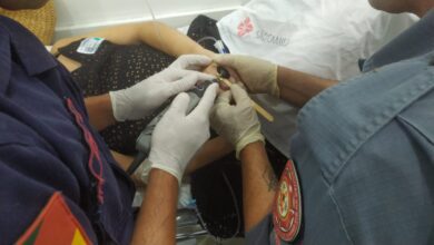 Mulher fica com aliança presa no dedo após incidente em Encantado