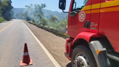 Incêndio em vegetação às margens da ERS-129 é controlado pelo Corpo de Bombeiros de Encantado