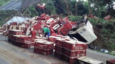 Caminhão de frango tomba na Lagoa da Garibaldi