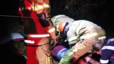 Caminhão tomba em ribanceira de cinco metros em Vespasiano Corrêa