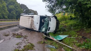 Van de transporte de Dois Lajeados tomba na ERS 130 em Arroio do Meio
