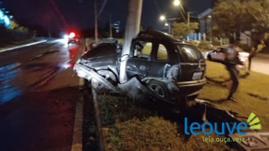 Motorista parte carro ao meio ao bater em poste