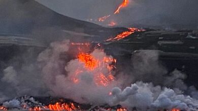 Encontro de lava de vulcão com o mar cria delta impressionante