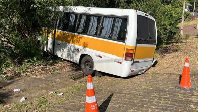 Micro-ônibus com 15 estudantes sai da via após falha de freio em Estrela