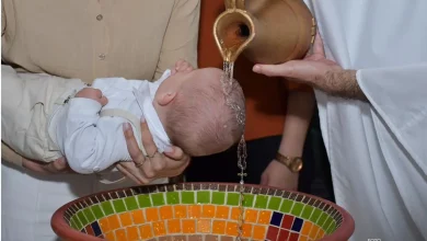 Imagem de terço se forma na cabeça de bebê durante batismo em SC