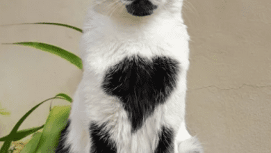 Com uma mancha em forma de coração no peito, Thor, um gato sem raça definida (SRD) de Lagoa Santa (MG),…