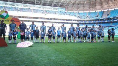 Grêmio realiza ação social com crianças em campo no jogo contra o Guarany