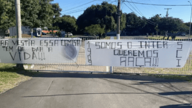 Torcedores do Inter fazem protestos com faixas no CT do Parque Gigante