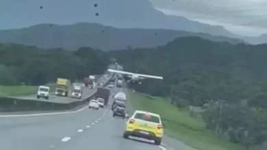 Avião monomotor faz pouso forçado na BR-101 em Santa Catarina