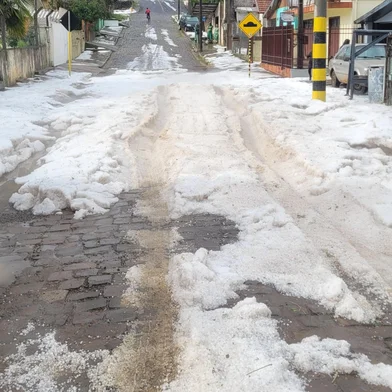 Vídeos e fotos registradas por moradores e equipes do Corpo de Bombeiros mostram praças, ruas e calçadas cobertas por pedras de gelo, com maquinários sendo utilizados para limpar o acúmulo — em uma cena mais comum em países com neve do que no outono gaúcho.