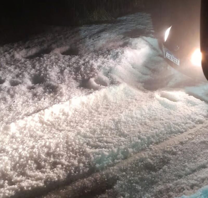 Imagens divulgadas nas redes sociais mostraram a rodovia completamente coberta pelo granizo, formando uma camada branca semelhante à neve.