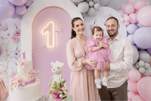 Ao lado dos pais, Gilso e Marizete Scartezini, ela