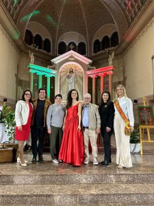 Leine e Ricardo Werner, Nelci Orsolin, Laura Dalmás, vice-prefeito Agostinho Orsolin, secretaria de Turismo e Cultura Karina Mezzomo, e Duda Dahm, princesa do Turismo do RS. O show da cantora emocionou quem esteve na Igreja Matriz São Pedro no último domingo, no encerramento da Semana Italiana.
