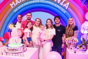 Luise Kipper e Renato Gheno dos Santos recepcionaram familiares e amigos íntimos no salão de festas da Machado Agropecuária para celebrar o primeiro aninho da filha Maria Antônia. A pequena, cercada de carinho, esbanjou alegria e distribuiu sorrisos durante toda a comemoração, que teve como tema “365 dias dos nossos melhores sorrisos”. Os avós Oimara Gheno e Eloi Machado dos Santos estavam radiantes ao lado dos pais, compartilhando a felicidade pelo marco especial. O cerimonial, assinado por Rogério Rissi, cuidou de todos os detalhes conforme os desejos dos anfitriões, garantindo uma festa impecável. A decoração, criada por Clarissa Costi, encantou com milhares de balões nas cores brisa blue e rosa bebê, intercalados com transparentes para dar leveza ao ambiente. A mesa do parabéns foi composta por louças da Casa Linda e um belíssimo bolo da Lefrazeer. A arte floral teve assinatura de Eduarda Bergamaschi, e o cardápio ficou sob responsabilidade de Helena Fontana. Entre sorrisos e abraços, a celebração marcou com ternura o primeiro ano de vida de Maria Antônia — um dia de alegria plena e amor em família.