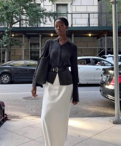 Se o clima estiver mais ameno e não der para apostar em uma terceira peça, não tem problema. O cinto também pode ser usado por cima de uma camisa com saia midi.