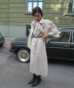 O truque também funciona por cima do sobretudo, viu? O look ganha um ar clássico, perfeito tanto para o outono quanto para o inverno. Nos pés, botas são o par ideal.