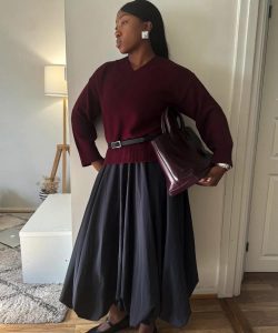 Se o clima estiver mais ameno e não der para apostar em uma terceira peça, não tem problema. O cinto também pode ser usado por cima de uma camisa com saia midi.