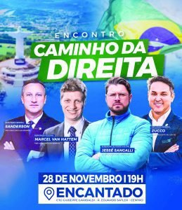 No dia 28 de novembro, às 19h, acontece em Encantado, no CTG Giuseppe Garibaldi, o “Encontro Caminhos da Direita – O Rio Grande que queremos!”. Confirmadas as presenças do pré-candidato a governador Zucco, dos pré-candidatos ao Senado Sanderson e Marcel Van Hatten, além de várias lideranças da Direita, entre elas o vereador mais votado de Porto Alegre, Jessé Sangalli, que tem forte vínculo familiar com Encantado. Após, jantar por adesão a R$ 50. Confirmações podem ser feitas pelo número: 051 98187-3266.
