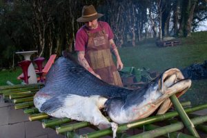 O assado, no estilo campeiro e fogo de chão, será conduzido por Leoni Bresolin, especialista em carnes exóticas, e terá duração de oito horas. A iniciativa é idealizada por Vânia Pedó, do Puro Pescado, que destaca a experiência como um espetáculo visual e gastronômico inédito na região.