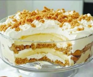 Decore com raspas de chocolate branco ou biscoito triturado.