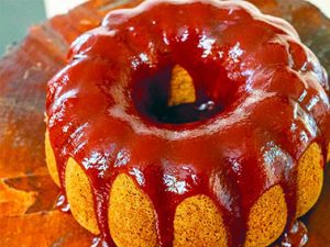 5. Despeje a calda ainda quente sobre o bolo, deixando escorrer pelas laterais. Sirva morno ou em temperatura ambiente.