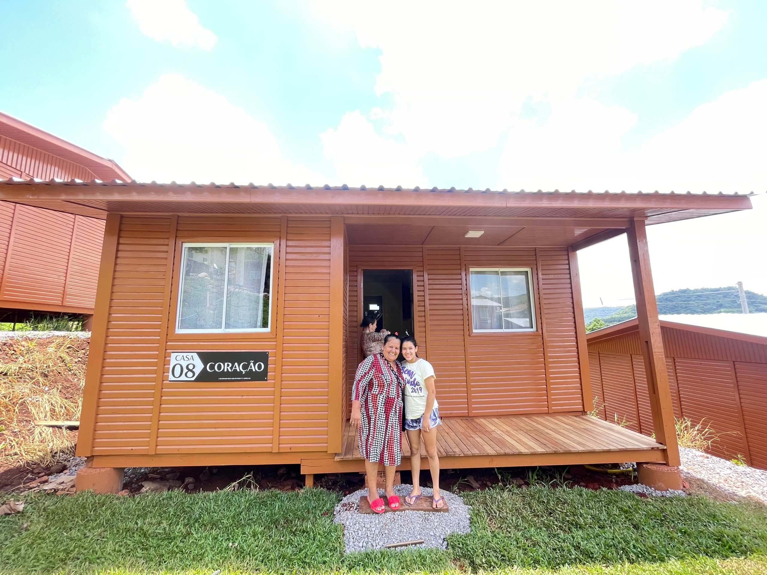 Durante o período mais crítico, chegou a ficar cerca de um mês em abrigo no salão paroquial e, em seguida, alugou uma casa com a ajuda da filha, até conseguir retornar à antiga residência. Agora, instalada na nova moradia, Loreci divide o espaço com sua neta Kiara. “A casa é linda, maravilhosa. É mais do que eu esperava. Não tem como explicar o que é sair de uma área de risco e agora poder dormir tranquila. Somente tenho que agradecer por estar recebendo essa oportunidade”, comemora.