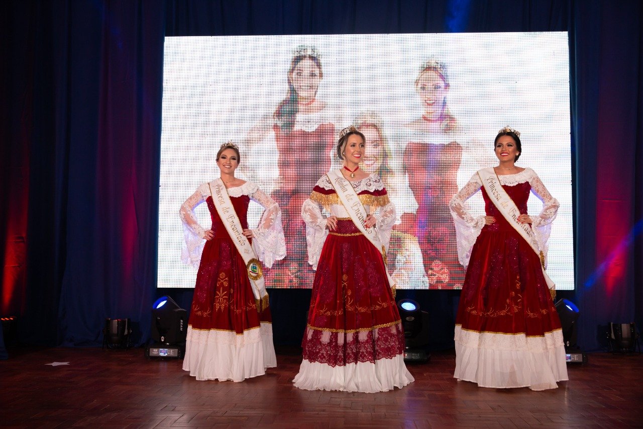 A rainha é Láira Giovanella Rheinheimer e as princesas são Josinara Won Bostel e Eduarda Dahm.