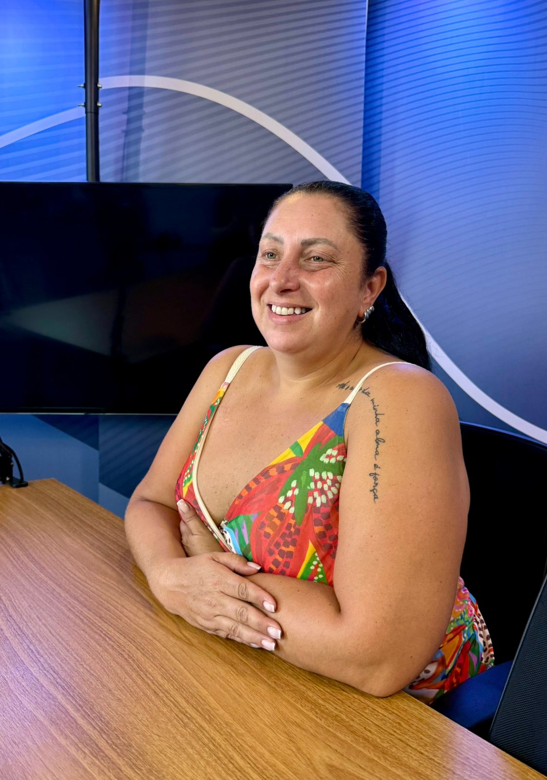 No braço, uma tatuagem resume tudo: “Até o avesso da minha alma é força.” E talvez seja isso que explique como ela sobreviveu a diagnósticos impossíveis, câncer, cirurgias, abandono e ainda sorri ao falar dos filhos. “Eu não tenho sorte. Eu tenho Deus.” Sem dúvida é uma coragem que transborda.
