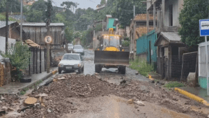 No bairro Cânion, em Caxias do Sul, a prefeitura fez uma ação emergencial após o transbordamento de uma caixa de drenagem causar danos a residências, veículos e à via entre a Rua da Vitória e a Rua da Felicidade.