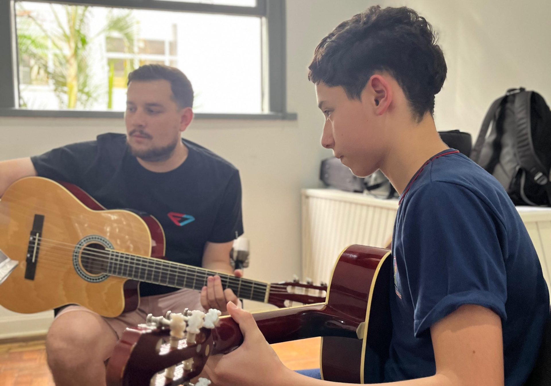 As aulas de violão são ministradas pelo professor Gabriel Farias, às quintas-feiras, com turmas de diferentes idades.