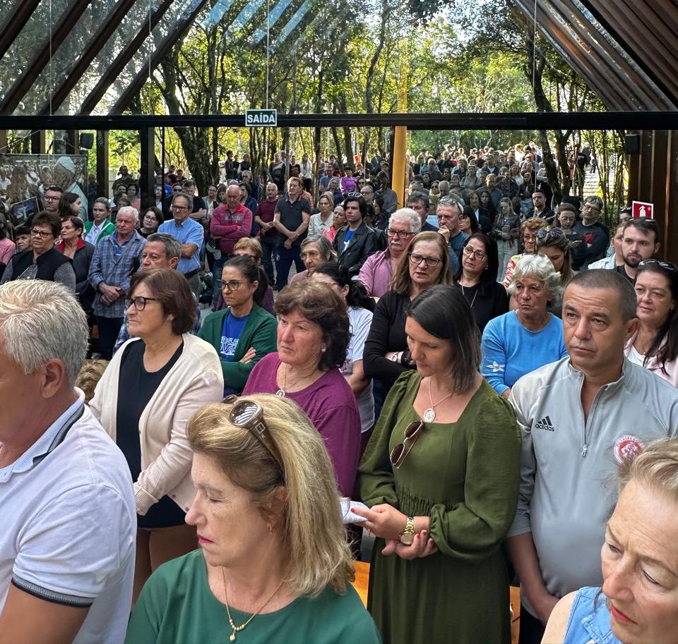 Celebração ocorreu na capela São João Batista Scalabrini, no Complexo do Cristo Protetor, em Encantado, e contou com momento simbólico diante de pedra abençoada pelo pontífice