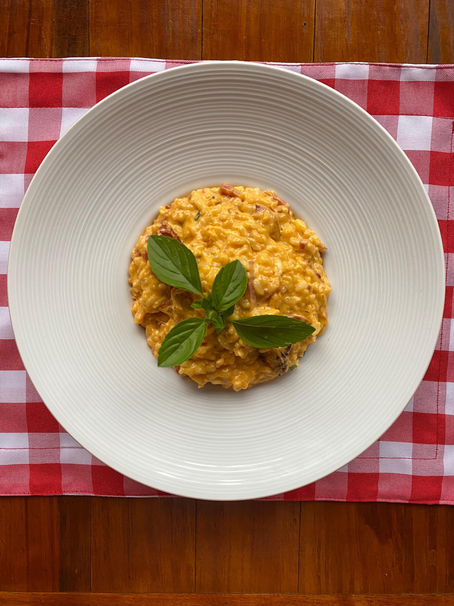 Casa Le Chiavi: Risoto de moranga com bacon (zero lactose e sem glúten)