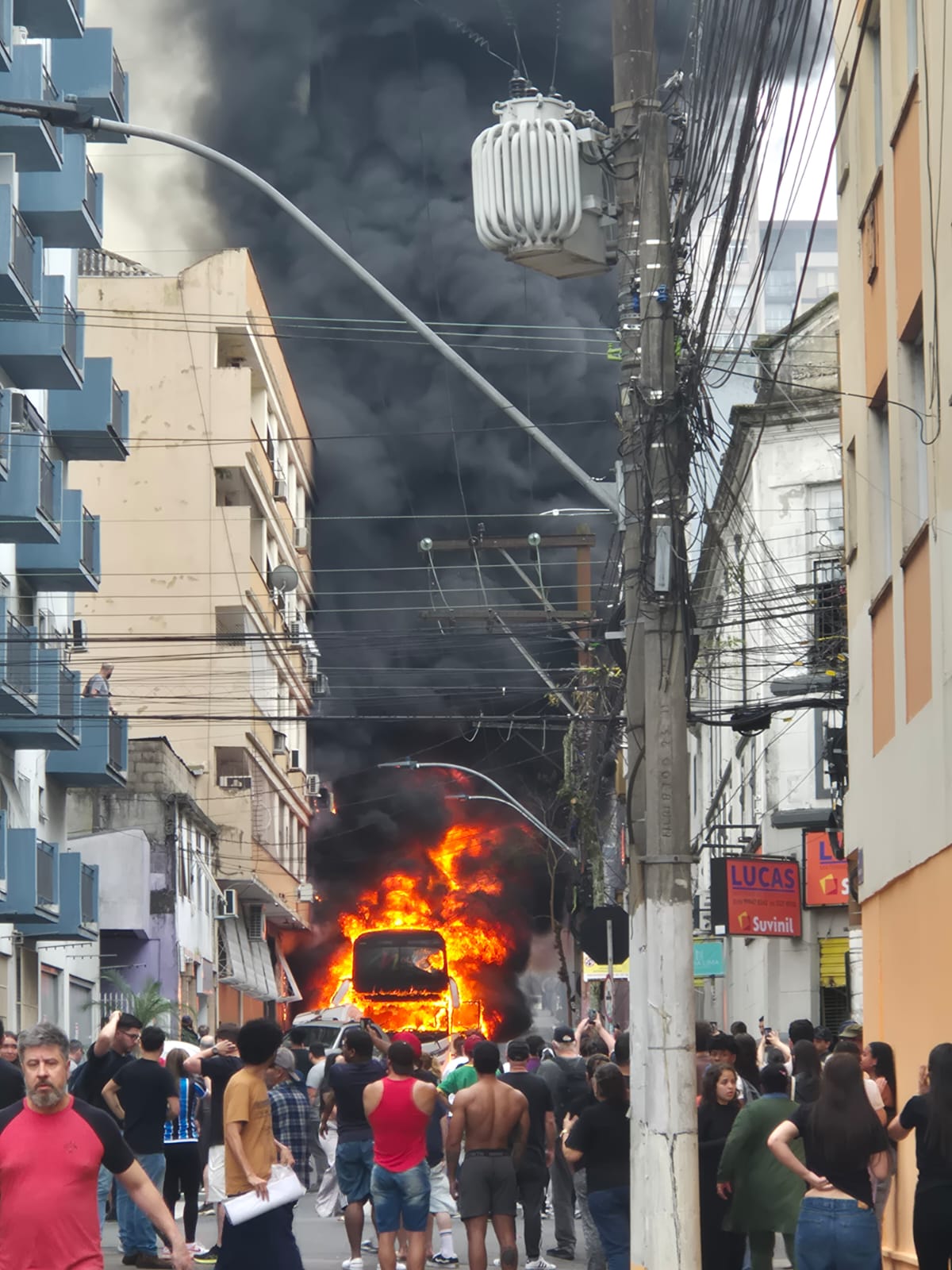 Segundo informações apuradas no local, duas pessoas foram retiradas do veículo e encaminhadas ao hospital. Além disso, um prédio vizinho também foi atingido pelas chamas, que geraram grande quantidade de fumaça visível de diferentes pontos da região central da cidade.