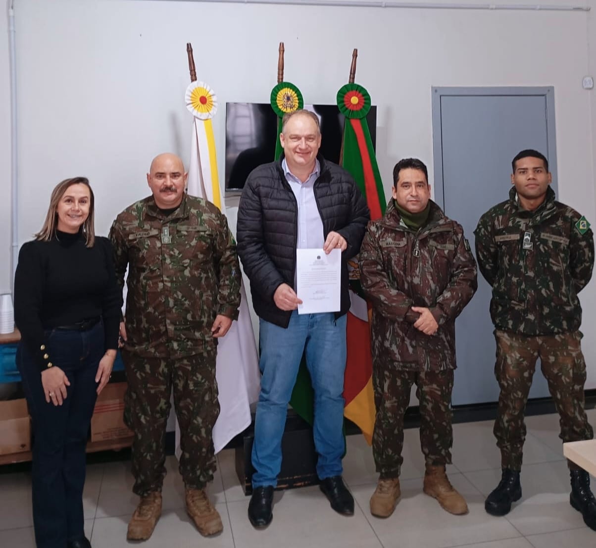 Na manhã desta quinta-feira (24), o prefeito de Roca Sales, Jones Wünsch (Mazinho), assumiu oficialmente a presidência da Junta de Serviço Militar do município. A solenidade foi realizada no gabinete do prefeito e contou com a presença de autoridades civis e militares.