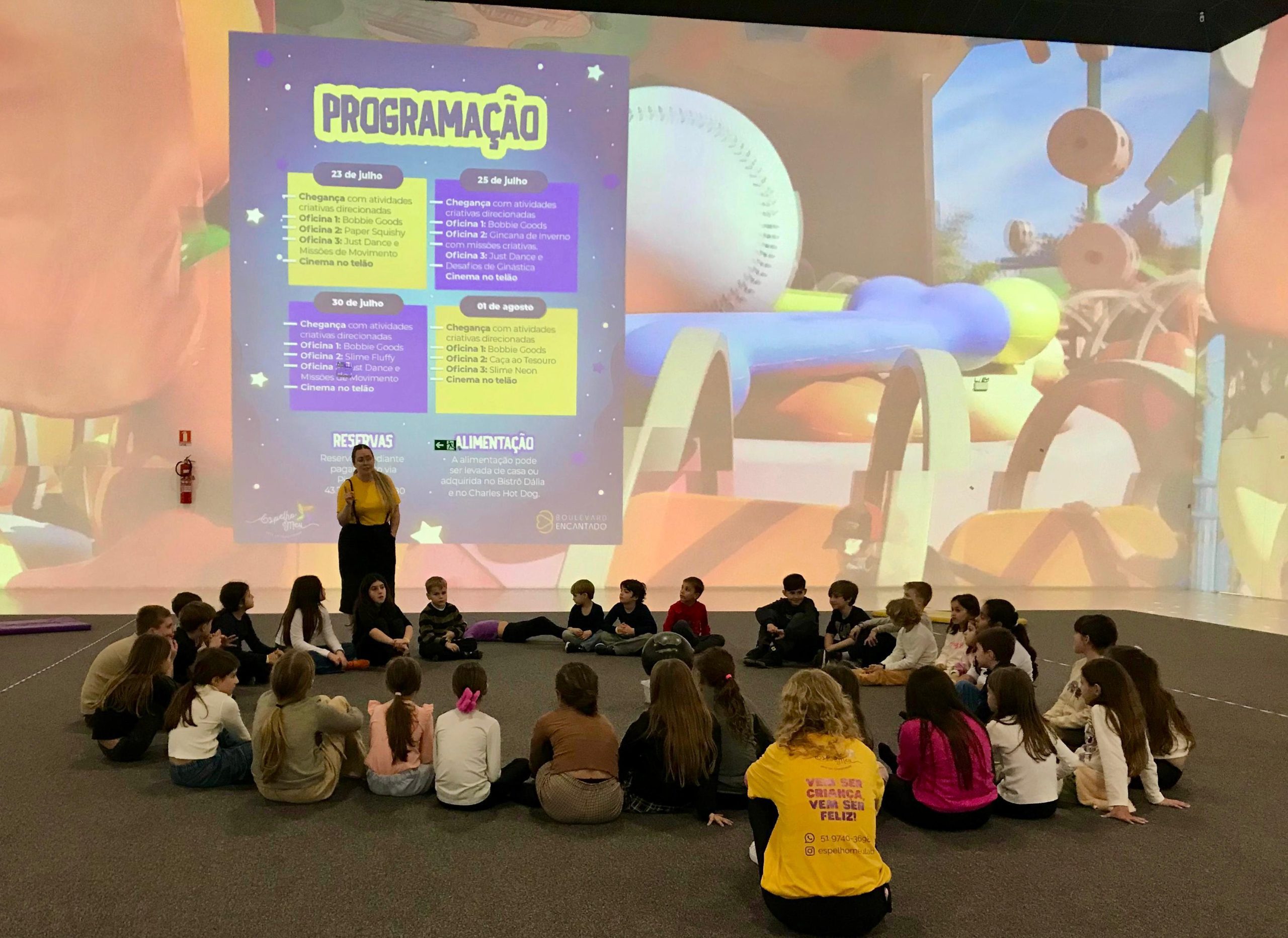 Após o sucesso dos encontros anteriores, realizados nos dias 23 e 25 de julho, a programação segue com oficinas de Bobbie Goods, Slime Fluffy, Slime Neon, além de Just Dance, Caça ao Tesouro e exibições de filmes escolhidos pelas próprias crianças.