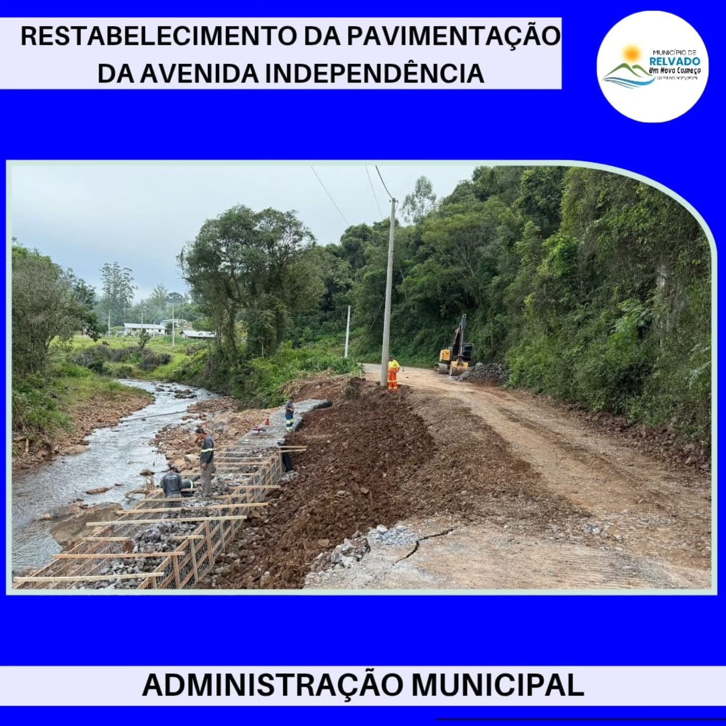 A Administração Municipal de Relvado está executando obras de pavimentação em dois trechos da avenida Independência, principal via de acesso ao município de Putinga. Em um dos pontos, também está sendo construído um muro de gabião, técnica utilizada para prevenir deslizamentos e garantir a segurança do local.
