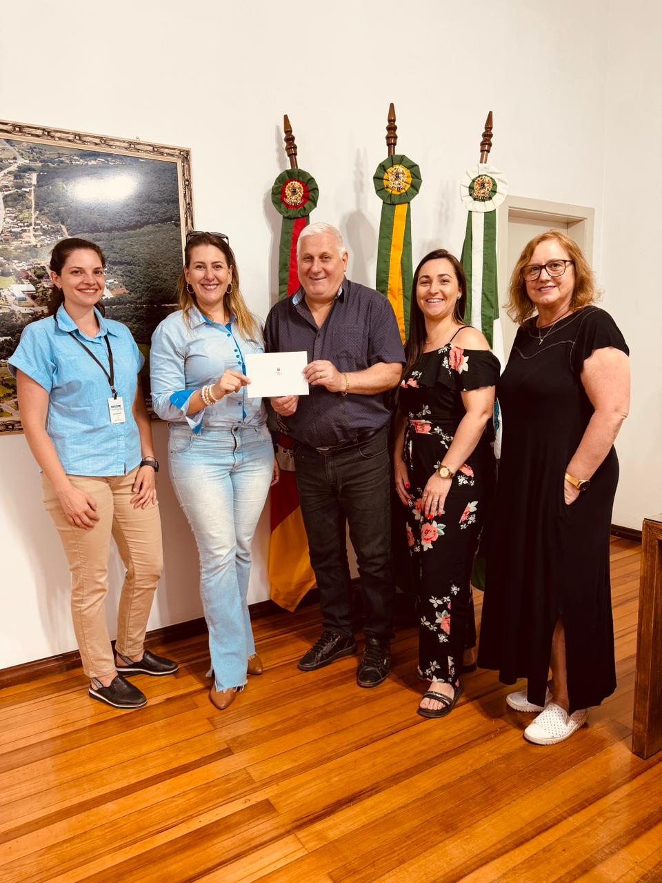 Durante a visita, foram recebidas pelo prefeito Carlos Luiz Fraporti, pela presidente da Associação Caminho da Fé, Odete Araldi, e pela secretária de Administração, Francieli Marchetti. Na ocasião, o chefe do Executivo entregou o convite oficial para a inauguração do trajeto, marcada para 21 de fevereiro, a partir das 18h, com programação religiosa, jantar de confraternização por adesão e show com o grupo Passiones, no Salão Paroquial.