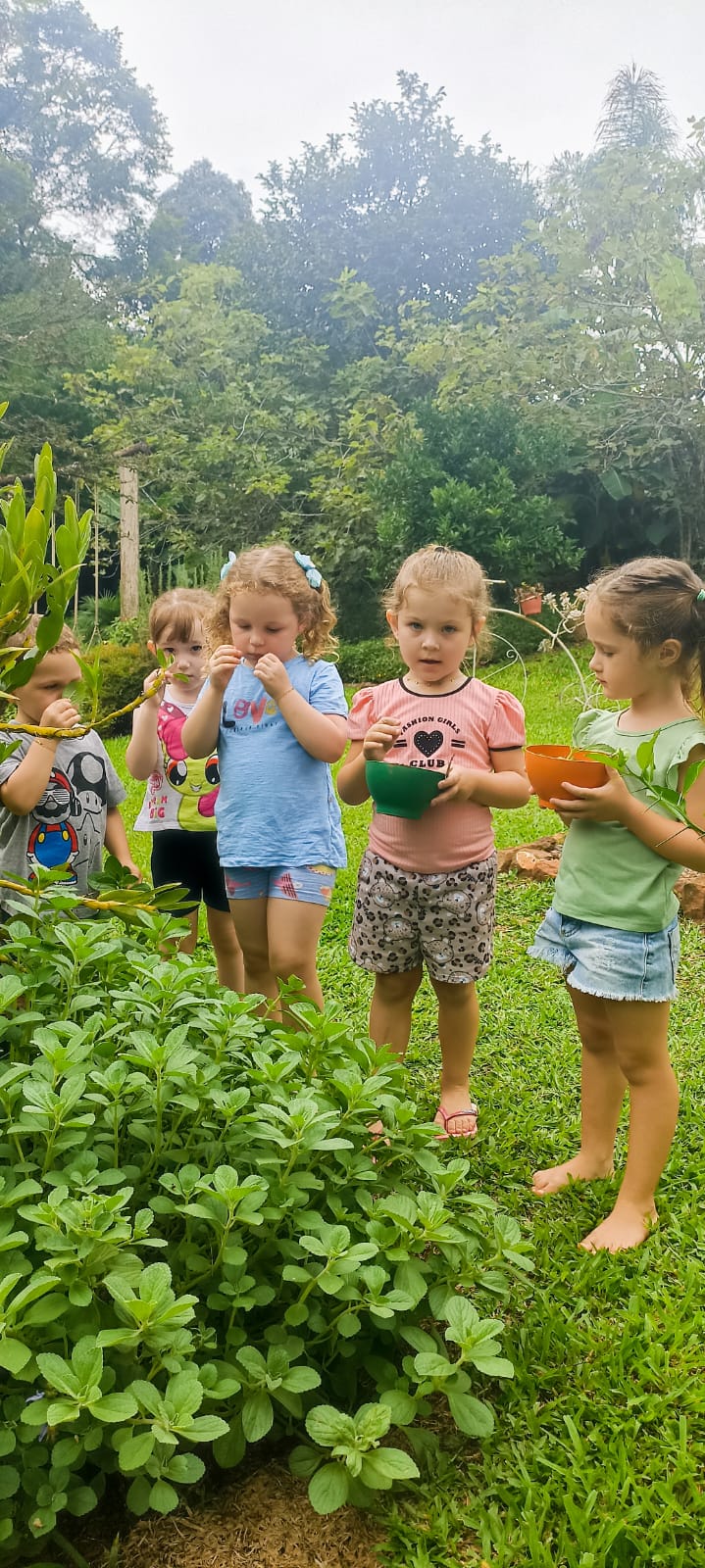 • Vivências pedagógicas: oficinas, horta educativa, trilhas, observação do pomar e contação de histórias.