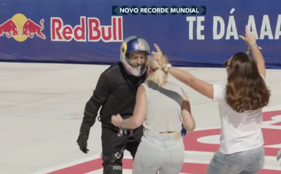 Minutos mais tarde, voltou à rampa para uma nova tentativa — e superou a própria marca, ao realizar uma descida de 70 metros de altura com velocidade registrada de 94 km/h.