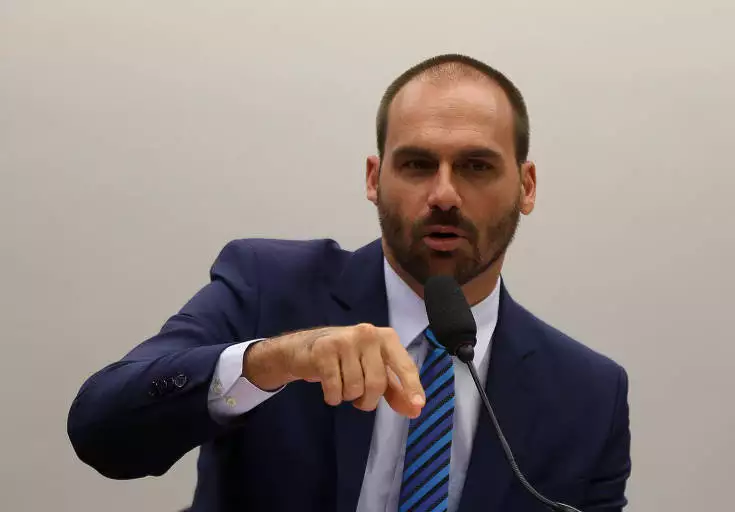 O deputado federal é acusado de ter articulado, junto com o blogueiro Paulo Figueiredo, uma campanha internacional de pressão contra o Supremo Tribunal Federal. A denúncia foi apresentada pela Procuradoria-Geral da República (PGR) e afirma que os dois usaram contatos nos Estados Unidos para tentar “constranger a atuação jurisdicional” do STF.