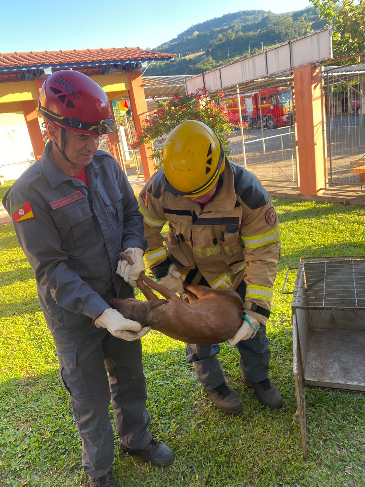 Um veado foi resgatado na manhã desta quarta-feira (30) no pátio da Escola Municipal Mundo Encantado, em Encantado. O animal foi encontrado por funcionários da instituição e o caso mobilizou equipes do Corpo de Bombeiros Militar e do Departamento da Causa Animal do município.