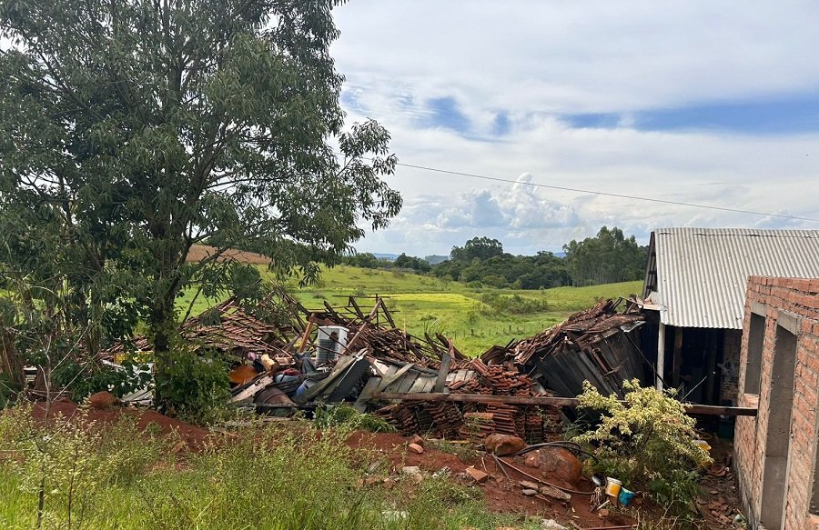 Em Novo Paraíso, uma residência foi completamente destruída após a queda de uma árvore sobre o imóvel.