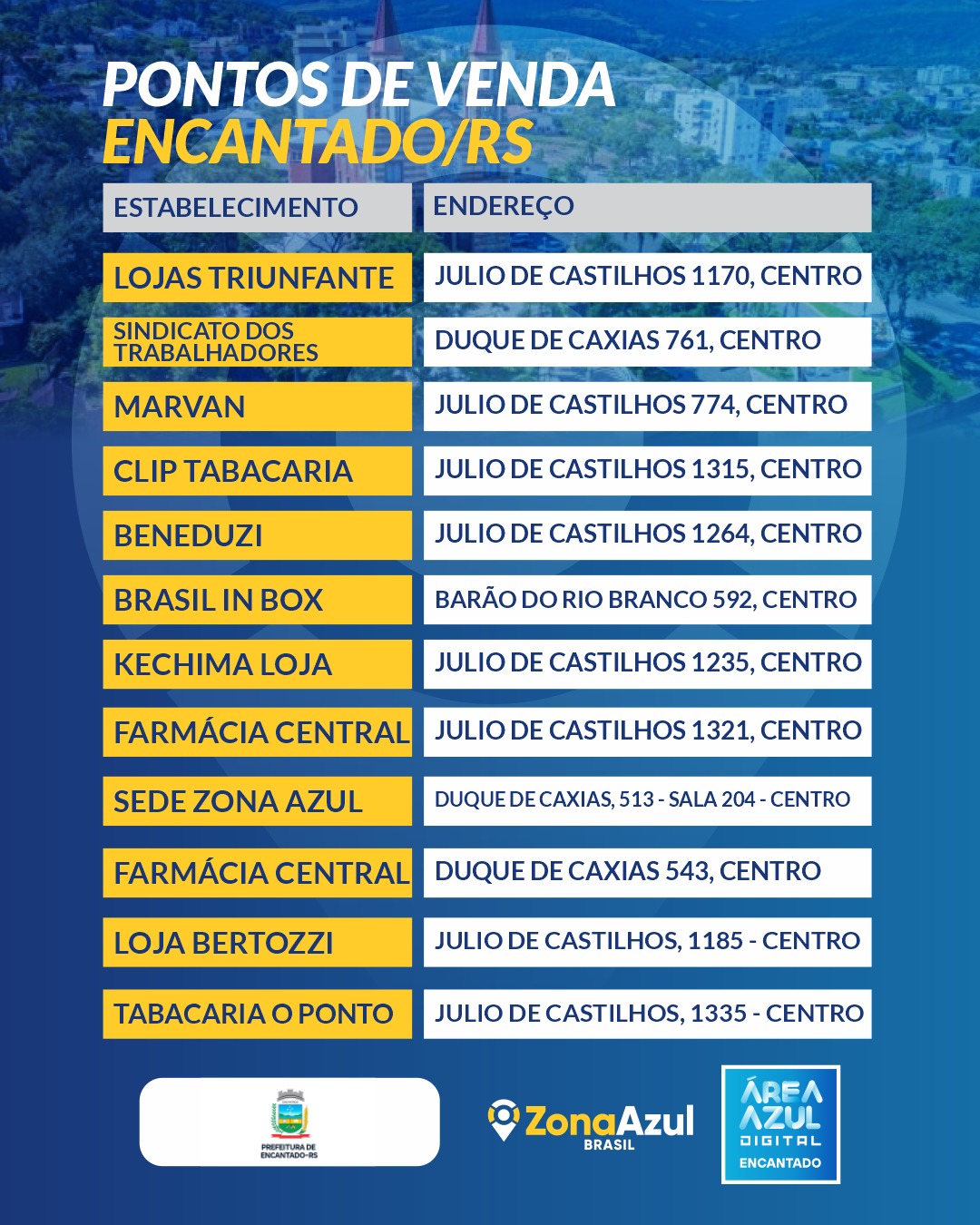 O sistema de estacionamento rotativo de Encantado agora conta com pontos físicos de pagamento com maquininha. Os estabelecimentos comerciais credenciados pela empresa responsável pela Zona Azul já estão autorizados a realizar as cobranças de forma digital.